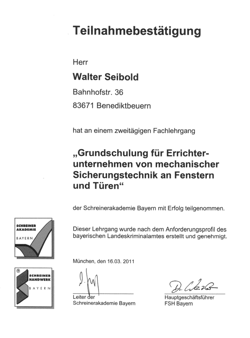 einbruchhemmende Türschlösser und Fensterverriegelungen, Scharnierseitensicherungen,